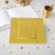 Gold colour, simple style wedding guest book with stylised, gold foil print within a gold foil, square border that features the couple's names and wedding anniversary date. Edit and replace names and date with your own. Select your guest book style.