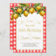 Elevate your special birthday with this Italian inspired elegant red and white botanical lemons, pattern birthday Invitation.