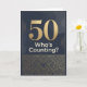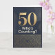 A 50th birthday card in dark shades of black and gold. A large oversized 50 with the words "who's counting"? The inside message reads a sweet message. No need to count. Personalise the message for your loved one turning 50.