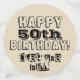 Over the Hill 50th Birthday. Personalise for any age for male or female. Fun black text on light brown background. Medium size has flying balloons in red, yellow, orange, green, blue on a white background on front and back. Sprinkle table confetti on party tables for some festive fun. Original Graphic Artwork design by TamiraZDesigns.