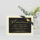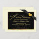 Create your own personalised 50th Wedding Anniversary Party Invitations -- Ivory and black with [printed] ebony ribbon and golden gemstone heart. Classic engraved-look typography with fancy vintage style swash script gold lettering -- Elegant, affordable luxury, and uniquely customised for you! Just add the names, date, and details for your special milestone anniversary celebration. **NOTE: All elements of this design are part of the PRINTED image -- the ribbon, jewelled brooch, and frame are NOT raised, embossed, or presented as real embellishments. Sized for small invitation cards. Click "Customise It" to change the size, paper options, or font choices. Other sizes and styles available in gallery. © Teri Francis. Coordinating sets with matching postage and thank you cards available upon request.