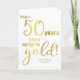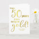 A gorgeous 50th wedding anniversary greetings card. It takes 50 years to turn a marriage into gold! The fabulous card is a great way to congratulate the happy couple. Personalise with your own name and message.
