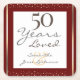 Lovely faux foil background with shimmering confetti highlights on the top and bottom border. Elegant and trendy design with fancy script typography. All text is adjustable and easy to change for your own party needs. Great elegant 50th wedding anniversary design. Available in different colours.