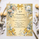 A faux gold background. Decorated with white and yellow florals, golden ribbons and bows. Personalise and add a name and details.