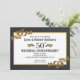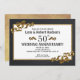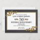 50th Wedding Anniversary Gold Framed Invitation designed with a black frame, gold coloured insert and ribbon accents. The reverse is a gold coloured texture background. To personalise, simply insert your details into our easy template, replacing the sample text. Be sure to view the matching Party Banner.
