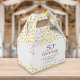 Elegant 50th golden wedding anniversary favour box featuring gold hearts confetti scattered across your names, special date and thank you message set in modern typography. A perfect way to say thank you to your guests! Designed by Thisisnotme©