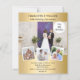 Create your own unique photo collage. Use four, 4 of your favourite photos. Personalise and add your names and party details. A faux gold looking background, black text.
