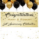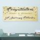 50th Wedding Anniversary Gold Reception Banner decorated with elegant text: Congratulations, the Couples First Names and 50th Anniversary Celebration, on a gold coloured background with heart shaped confetti. To personalise, simply insert your text into our easy template, replacing the sample.