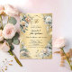 A faux gold looking background. Decorated with white and yellow florals and a golden ribbon. Personalise and add your names and details.