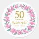 50th Wedding Anniversary Golden Floral Pink Wreath Classic Round Sticker