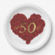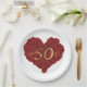 Romantic Red Roses Floral Heart with Faux Gold Foil Number 50 50th Wedding Anniversary Party Golden Wedding Anniversary Elegant Paper Plates for Guests