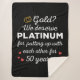 'Gold? We deserve Platinum for putting up with each other for 50 Years' quote for a couple who got married 50 years ago or a couple renewing wedding vows on their gold anniversary.