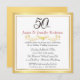 Elegant Golden 50th Wedding Anniversary Party Invitations with formal script and scrolled antique design -- Customise the name, date, and details for your happy celebration. **NOTE: Sized for SQUARE invitation cards -- REQUIRES EXTRA POSTAGE. Other sizes and styles available. See matching envelopes and postage in gallery.