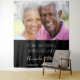 A tapestry celebrating a 50th wedding anniversary. An elegant modern black background. Personalise and add your own high quality photo of the happy couple. The text: The names is written with a white modern hand lettered style script. Tempates for names and a date. Can be used as wall decor for the party, a photo booth backdrop or keepsake.
