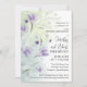 Soft purple watercolor flowers decorate this elegant handpainted 50th wedding anniversary party invitation. Trendy typography gives the text a modern and casual vibe. A soft green watercolor wash on the front and back creates a sophisticated palette.