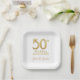 Celebrate a remarkable milestone with this elegant 50th Wedding Anniversary paper plates. Featuring luxurious gold lettering and personalisation for husband and wife's names. These paper plates make an elegant detail to your party that honours five decades of love and commitment. Perfect for commemorating this special occasion, it will add a touch of sophistication to any event. Customisable white background to match your special event theme colours.