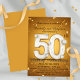 Celebrate a milestone of love and commitment with our stunning 50th Wedding Anniversary Invitation. This elegant invitation features a luxurious gold background adorned with sparkling confetti, setting the perfect tone for a grand celebration. The centerpiece of the design is a dazzling "50th" embellished with brilliant diamond-like accents, symbolising the precious and enduring nature of a half-century of marriage.