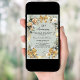 A sage green background. Decorated with white and yellow florals, golden ribbons and bows. Personalise and add a name and details.