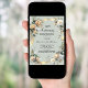 A sage green background. Decorated with white and yellow florals and a golden ribbon. Personalise and add a name and details.