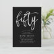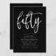 This modern, white on black design features the word "fifty" in a script style calligraphy and an elegantly spaced, modern typography comprising classical serif fonts. The invitations reverse to a delicate repeating triangle pattern in black and chromatic grey. Suitable for men or women. Choose from printed Zazzle invitations with different corner styles and gorgeous paper stock, or instant download if you need it now, or both so you can send paper and digital invites as required.