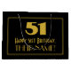 This vintage look Roaring '20s appearance inspired birthday-themed giftbag design features a large art deco look inspired number "51", the message "Happy 51st Birthday,", a custom name, and a border pattern consisting of thin lines. It features a black-coloured background. A gift bag like this might be used when giving a gift or present in honour of somebody’s fifty first birthday. [~Z0000501]