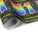 This fun, vibrant, and colourful birthday wrapping paper design features a large number "51" with a rainbow spectrum gradient inspired pattern, along with the message "Happy 51st Birthday,", and a customisable name. Part of the background has a pattern of various music notes and symbols having a variety of colours and sizes. Birthday themed wrapping paper like this might be a fun way to wrap a gift or present being given to celebrate a musician’s, a singer’s, a music composer’s, or somebody else’s fifty first birthday. [~Z0000422]