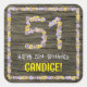 This rustic, fun, botany-inspired birthday square sticker design has the message “Happy 51st Birthday,” along with an editable recipient name. The large number “51” plus the border both consist of flower icons. The background has an imitation/faux woodgrain type pattern. Stickers like these might be used when celebrating somebody’s fifty-first birthday. [~Z0000654]