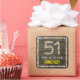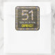 51st Birthday: Floral Number, Faux Wood Look, Name Square Sticker