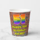 This exciting and fun urban graffiti and street art themed birthday paper cup design features a large number “51” with a colourful rainbow spectrum gradient inspired pattern, along with the message “Happy 51st Birthday,”, and a personalised name. The background features a brick wall pattern. Vibrant, colourful paper cups like this might be fun to use at a birthday celebration/party being held in celebration of somebody’s 51st birthday. [~Z0000543]