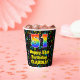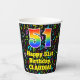 This cheerful and joyful music themed birthday paper cup design features a large number “51” having a rainbow spectrum gradient inspired pattern. It also features the message “Happy 51st Birthday,”, and an editable name. The background features an exciting and colourful pattern of various music notes and symbols having a variety of colours and sizes. Vibrant, colourful paper cups like this might be fun to have at a birthday party/celebration being held in celebration of somebody’s 51st birthday. [~Z0000541]