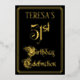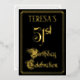 The front of this ornate, opulent, foil fifty-first birthday party invitation design features the message “51st Birthday Celebration” in luxurious script-style text. It also has a personalised name. The background of the front is coloured black by default (although it can be customised to a different colour). The back features personalised details about the event, such as the date, time, location, and any other relevant information. Luxurious, fancy, customised invitations like these might be used to invite guests to a birthday party being held to honour somebody’s fifty-first birthday. [~Z0000589]