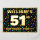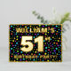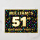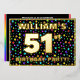 The front of this vibrant and fun fifty-first birthday celebration foil invitation card design features a personalised name, a large number “51st”, the message “BIRTHDAY PARTY!”, and a border. The background of the front has an eye-catching, colourful pattern of star shapes. The back features personalised details about the event, such as the date, time, venue/place, and any other useful information. Customised invitations like these might be a fun way to invite attendees/guests to a birthday party/gathering being held to celebrate somebody’s 51st birthday. [~Z0000600]