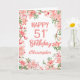 51st Birthday Pink Peach Peonies Watercolor Floral Birthday Card. For further customisation, please click the "Customise it" button and use our design tool to modify this template.