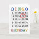 52nd Birthday card. Say Happy Birthday to a bingo player with a bingo card. The age is circled in red. A bingo crazy player will get a huge kick out of this card! Copyright Norma Cornes.