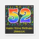 This fun, colourful, and vibrant birthday-themed paper napkin design features a large number "52" having a rainbow spectrum gradient inspired pattern. It also features the message "Happy 52nd Birthday,", and a personalised name. Part of the background has a colourful music notes and symbols pattern. Fun, customised paper napkins like this might be used at a celebration being held to honour a musician’s, a singer’s, a composer’s, or somebody else’s fifty second birthday. [~Z0000421]