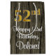 This stylish, elegant, and luxurious birthday giftbag design features a large ordinal number “52nd” having an imitation/faux gold-like look, in addition to the birthday greeting message “Happy 52nd Birthday,” and a personalised recipient name in a script-style font. The background has a faux wood-inspired pattern. A sophisticated giftbag like this might be used when wrapping presents being given to somebody in celebration of their 52nd birthday. [~Z0000520]