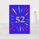 An explosive 52nd birthday card! What a wonderful way to send birthday greetings. The number 52 in bright yellow with an explosion of bright colours and stars.