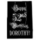 This elaborate and lavish birthday giftbag design features the message “Happy 52nd Birthday,” in ornate script style text, on a black coloured background. It also features an editable recipient name. A formal gift bag like this might be used when wrapping presents being given to somebody in celebration of their fifty second birthday. [~Z0000557]
