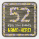 52nd Birthday: Floral Number, Faux Wood Look, Name Square Sticker