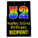 This exciting, fun, and colourful birthday-themed gift bag design features a large number "52" with a rainbow spectrum gradient inspired pattern, along with the message "Happy 52nd Birthday,", and a custom recipient name. It also has a black-coloured background. A birthday themed gift bag like this might be a fun way to wrap a gift or present being given to somebody who is celebrating their 52nd birthday. [~Z0000512]