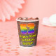 This fun and exciting urban street art and graffiti themed birthday paper cup design features a large number “52” with a colourful rainbow spectrum gradient inspired pattern, along with the message “Happy 52nd Birthday,”, and a personalised name. The background has a brick wall pattern. Colourful, vibrant paper cups like this might be fun to have at a birthday party being held in celebration of somebody’s fifty second birthday. [~Z0000543]