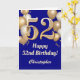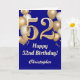 52nd Birthday Navy Blue and Gold Balloons Confetti Card. For further customisation, please click the "Customise it" button and use our design tool to modify this template.