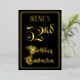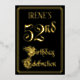 The front of this elegant, opulent, foil fifty-second birthday party invitation design features the message “52nd Birthday Celebration” in luxurious script-style text. It also features a custom name. The background of the front is colored black by default (although it can be customized to a different color). The back features personalized details about the event, such as the date, time, location, and any other relevant information. Ornate, fancy, personalized invitations like these might be used to invite guests to a birthday party/celebration being held to honor somebody’s 52nd birthday. [~Z0000589]
