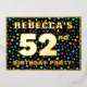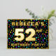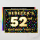 The front of this exciting fifty-second birthday party/celebration foil invitation card design features a customisable name, a large number “52nd”, the message “BIRTHDAY PARTY!”, and a border. The background of the front has an eye-catching, colourful starfield pattern. The back features personalised details about the event, such as the date, time, place, and any other useful information. Customisable invitations like these might be a fun way to invite guests/attendees to a birthday gathering/party being held to honour somebody’s 52nd birthday. [~Z0000600]