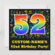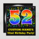 The front of this fun, colourful, and exciting birthday party invitation design features a large number "52" having a rainbow spectrum gradient inspired pattern. It also features a custom name and the message "52nd Birthday Party!". Part of the background features a fun and colourful music notes and symbols pattern. The back features customised details pertaining to the event that the potential guests are being invited to. Happy, editable birthday celebration invitation cards like this might be sent to potential guests of a celebration being held to honour a musician’s, a singer’s, a song composer’s, or somebody else’s 52nd birthday. [~Z0000427]