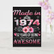 52th Birthday Made In 1974 52 Years Of Being Aweso Card