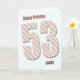 A very modern 53rd birthday card. This card is truly fabulous. Big letters in modern stripes on a blue background. Customise for your own unique message.