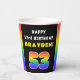This upbeat and bold birthday paper cup design features a big number “53“ having a colourful rainbow spectrum inspired gradient pattern, along with the message “HAPPY 53rd BIRTHDAY,”, and a customisable recipient name. Birthday themed paper cups like this might be fun to use at a party being held for somebody who is celebrating their 53rd birthday. [~Z0000639]