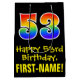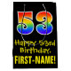 This colourful, fun, and exciting birthday giftbag design features a large number "53" with a rainbow spectrum gradient inspired pattern, along with the message "Happy 53rd Birthday,", and a custom recipient name. It also has a black-coloured background. A birthday themed gift bag like this might be a fun way to wrap a gift or present being given to somebody who is celebrating their fifty third birthday. [~Z0000512]