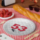 Close-up of white golf ball pattern with a golf club for 53rd birthday party.